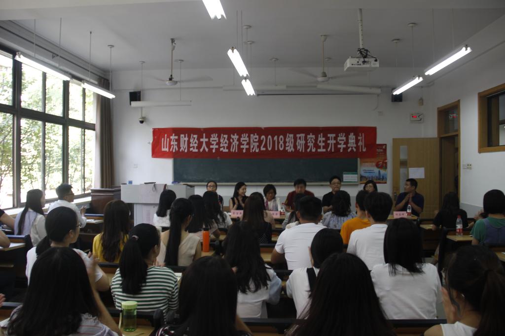 9月6日下午16:30,太阳成集团tyc234cc2018级研究生开学典礼于舜耕校区教学楼1108教室隆重举行。经理董长瑞,党委书记姜伟,副经理王传荣、彭留英、齐杨,学工办主任周新秀,研究生秘书刘应涛和教师代表崔宝敏出席会议。2018级全体研究生到场参会,会议由彭留英主持。