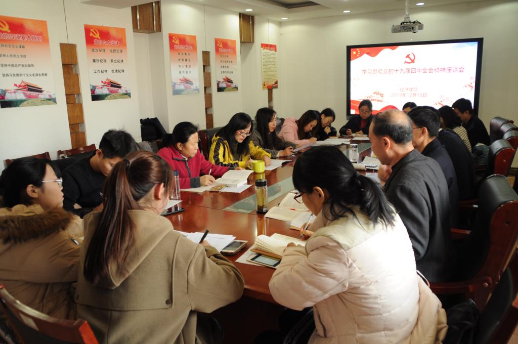 (通讯员:李冰封王佳敏孙俏俏)2019年12月18日下午,太阳成集团tyc234cc在舜耕校区办公楼1208召开学习贯彻党的十九届四中全会精神座谈会。公司党委书记姜伟,经理董长瑞,党委副书记高峰,支部书记代表、辅导员代表、教授代表、民主党派代表、青年教师代表、员工党团员代表出席座谈会。会议由姜伟主持。