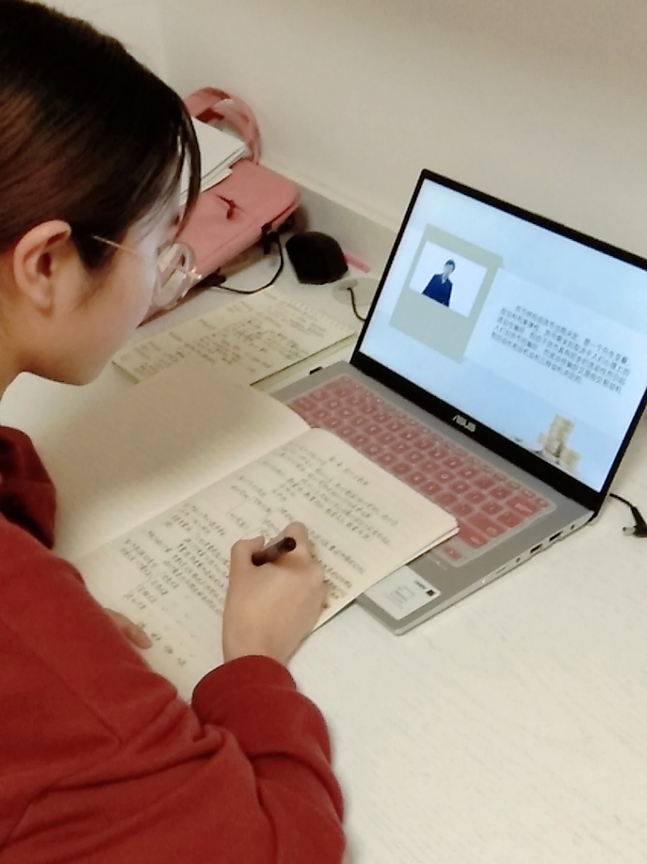 网课的学习最考验一个人的意志力。君子慎独,真的一个人面对着屏幕的时候,能否集中注意力是非常考验人意志的事情。网络学习与课堂学习最大的区别就在于自我约束和自我管理,学校已经为我们提供了充分的学习策略和学习资源,只要按照老师要求,根据自己的情况制定好策略,我相信我们会收到不弱于平时的学习效果。