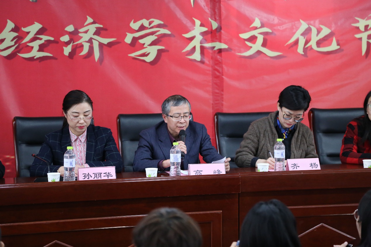 高峰认为,经济学术文化节紧紧围绕学院“厚基础、宽口径、高素质”的人才培养目标,激发员工志存高远、经世济民的时代责任感与历史使命感,推动优良校风学风的建设。他对组织工作提出如下四点要求:高度重视,精心组织筹备;严谨生动,把握正确导向;发挥优势,着力增强吸引力和感染力;善于总结,注重宣传活动成果。希望同学们能够追求“向上、向学、向善”的目标,奋发图强,大胆追梦,以饱满的热情、积极的态度投身经济学术文化节中,展现财大学子的特色和风采,充盈财大的文化内涵。