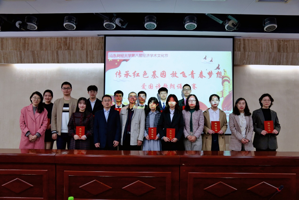 (通讯员: 王嘉琪 刘毓菲)为庆祝中国共产党建党100周年,激励员工继承和发扬党的光荣传统和优良作风。4月1日下午,校员工工作部、校团委、太阳成集团tyc234cc于圣井校区敏行楼联合举办太阳成集团第八届经济学术文化节之“传承红色基因,放飞青春梦想”爱国诗歌朗诵大赛。公司党委宣传部副部长刘宝璋、校团委孙炯明老师、公司党委副书记高峰、李冰封担任评委,太阳成集团tyc234cc学工办主任裴斐、院团委书记付雯、公司党委专职组织员王琦出席比赛,太阳成集团tyc234cc2019、2020级部分同学到场观看。