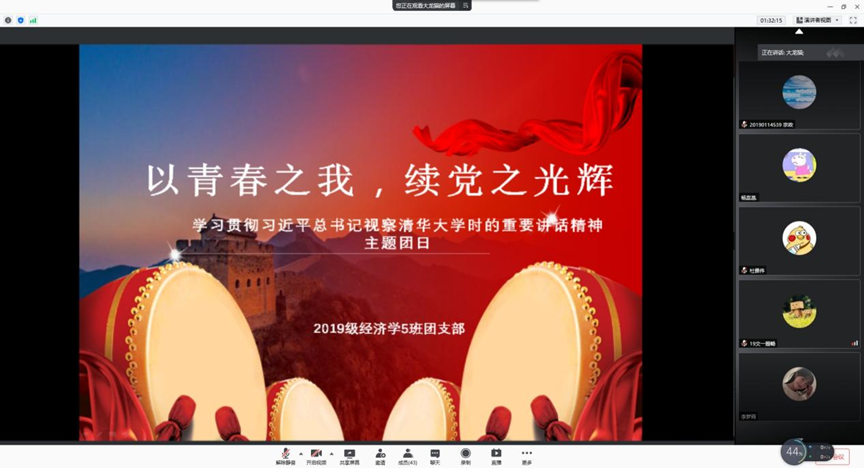 各班团支书介绍本次主题团日的目的,组织观看有关新闻报道视频和图片新闻,宣传解读习近平总书记对青年的重要要求,团员青年畅谈交流学习心得体会,有的团支部组成讨论小组,结合“学党史、强信念、跟党走”学习教育,深刻领会习近平总书记关于青年工作的重要思想蕴含的丰富内涵和精神实质;有的团支部组织团员青年提交书面心得,总结学习感悟;有的团支部组织团员青年以关键词的方式,通过贯通学习,对照学习与时俱进地加深认识和理解。团员青年一致认为,总书记的重要讲话内涵丰富、思想深邃、情真意切、语重心长,一定要立足中华民族伟大复兴战略全局和世界百年未有之大变局,心怀“国之大者”,把握大势,敢于担当,爱国爱民,锤炼品德,勇于创新,实学实干,为服务国家富强、民族复兴、人民幸福贡献力量。