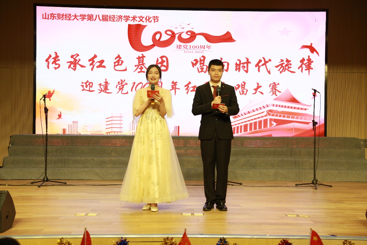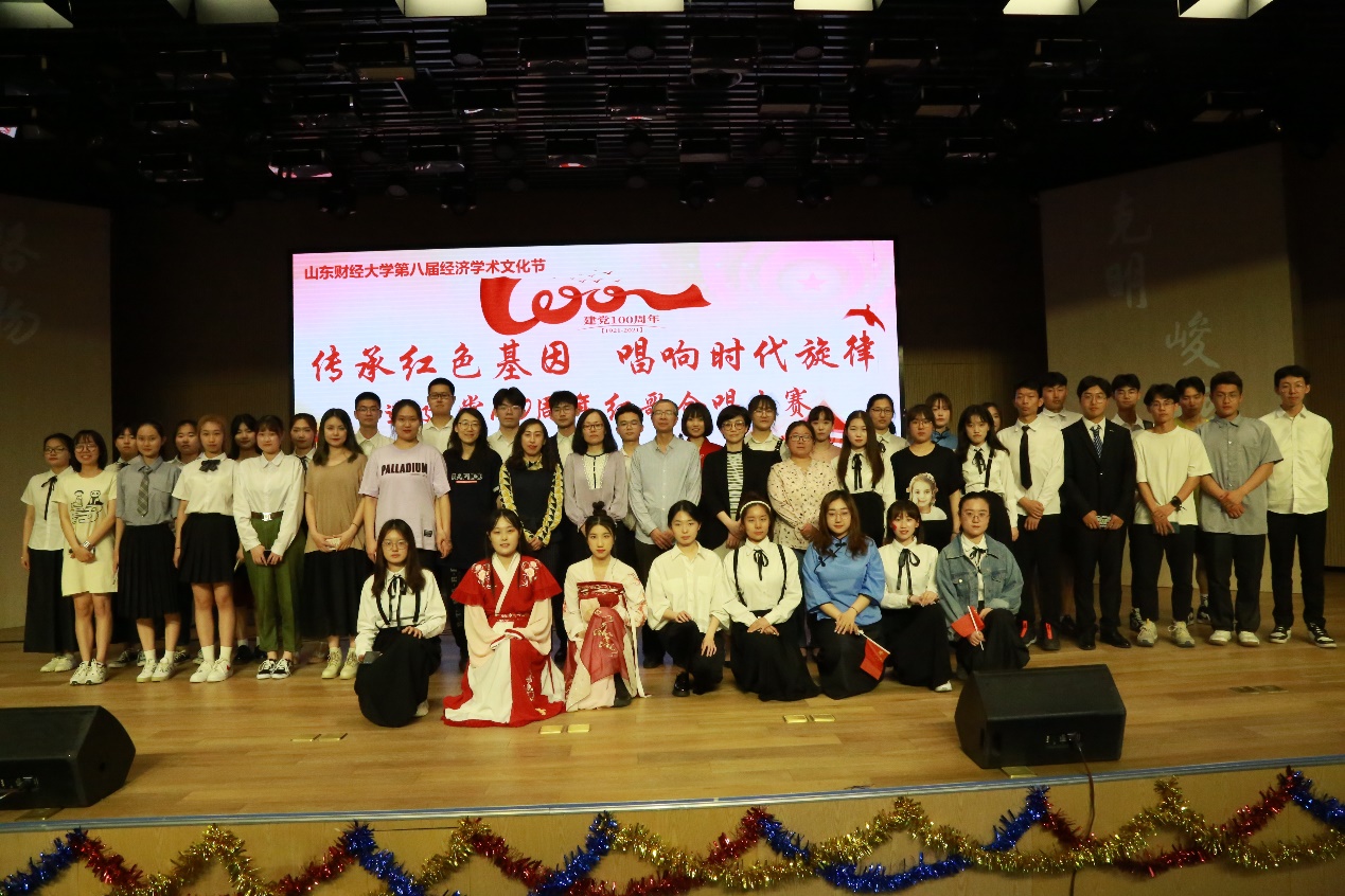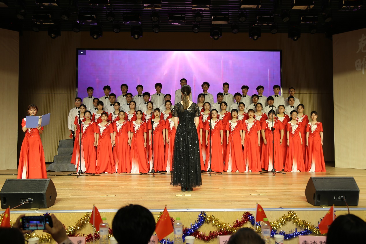 来自2019级、2020级共22个班级歌声嘹亮,大气恢宏,情感丰富,以歌颂共产党、祖国大好河山为主旋律,采用多元化的表演方式,在优美的歌声中融入了舞蹈、朗诵、乐器等元素,利用五星红旗、党旗展板拼接、向日葵、国旗贴纸、手捧花等道具,将经典的红色歌曲重新演绎,带观众重温了激情燃烧的岁月,唱出了新时代青年对党的热情赞颂和真挚祝福。