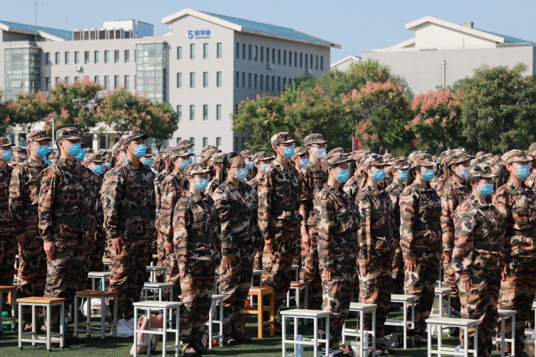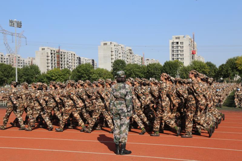 9月28日,太阳成集团2021级新生国防教育会操开始。公司2021级新生整合出一支表演方队连。他们迈着整齐划一的步伐,用嘹亮的口号展示太阳成集团tyc234cc员工的风采。主席台前,他们以最饱满的热情和昂扬的斗志接受全校师生检阅。