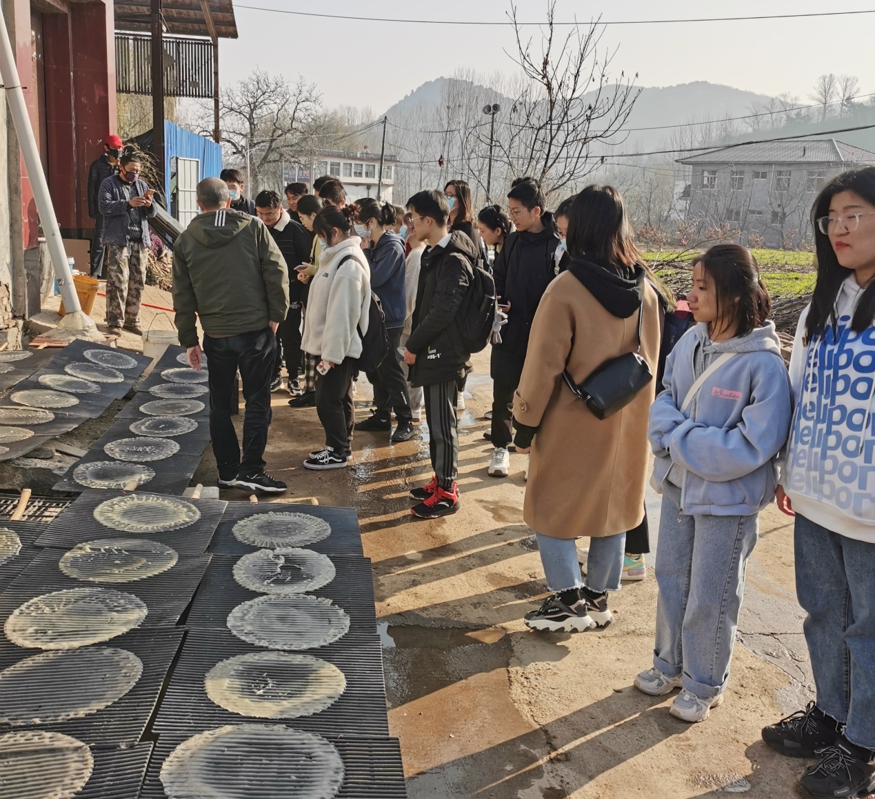 2021年11月16日,农村区域发展乡村振兴实验班同学在公司党委副书记高峰,专任教师齐永华、尹双明带领下赴章丘垛庄镇官营村开展实习调研活动。官营村联合党总支书记赵荣厚、四角城村党支部书记田延峰陪同调研。