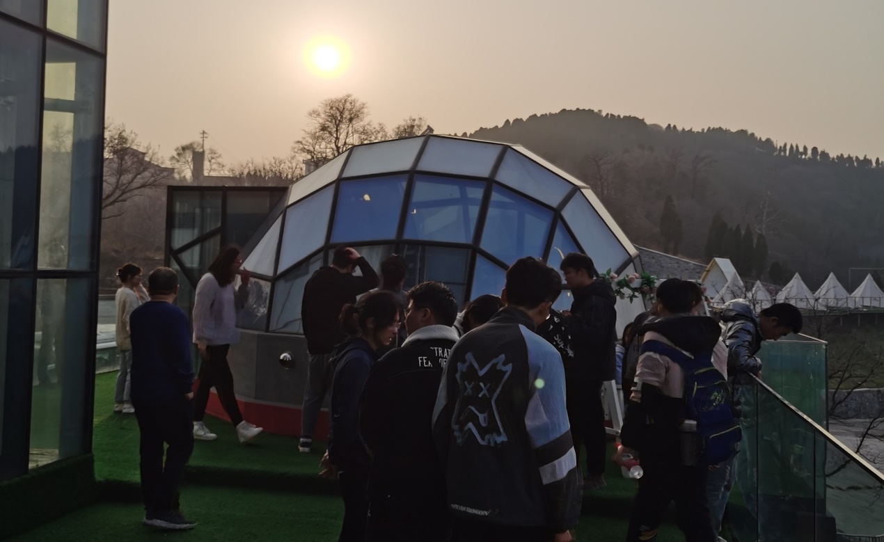 会 后调研期间,在田延峰书记的带领下,师生一行先后考察了官营村果蔬批发市场、猕猴桃采摘园,樱桃产业种植园、地瓜粉皮产业扶贫项目、党支部领办合作社项目。接下来大家到无公害蜜薯采摘基地开展农事体验活动,期间同学们就乡村振兴、产业扶贫和现代农业等问题和村委班子成员、种植农户、村民进行了深入访谈。随后一行人来到若谷山居调研,若谷山居地处四角城村,毗邻七星台景区,海拔600余米,地理位置优越、自然环境优美。若谷山居民宿为全景透明玻璃设计,以砖头、木头、石头三种元素为主要装修风格,于简洁明快中体现自然之美,集餐饮、住宿、会议、茶艺于一体,可容纳三百人同时住宿和就餐,是济南市规模最大也是最成功的精品民宿之一。