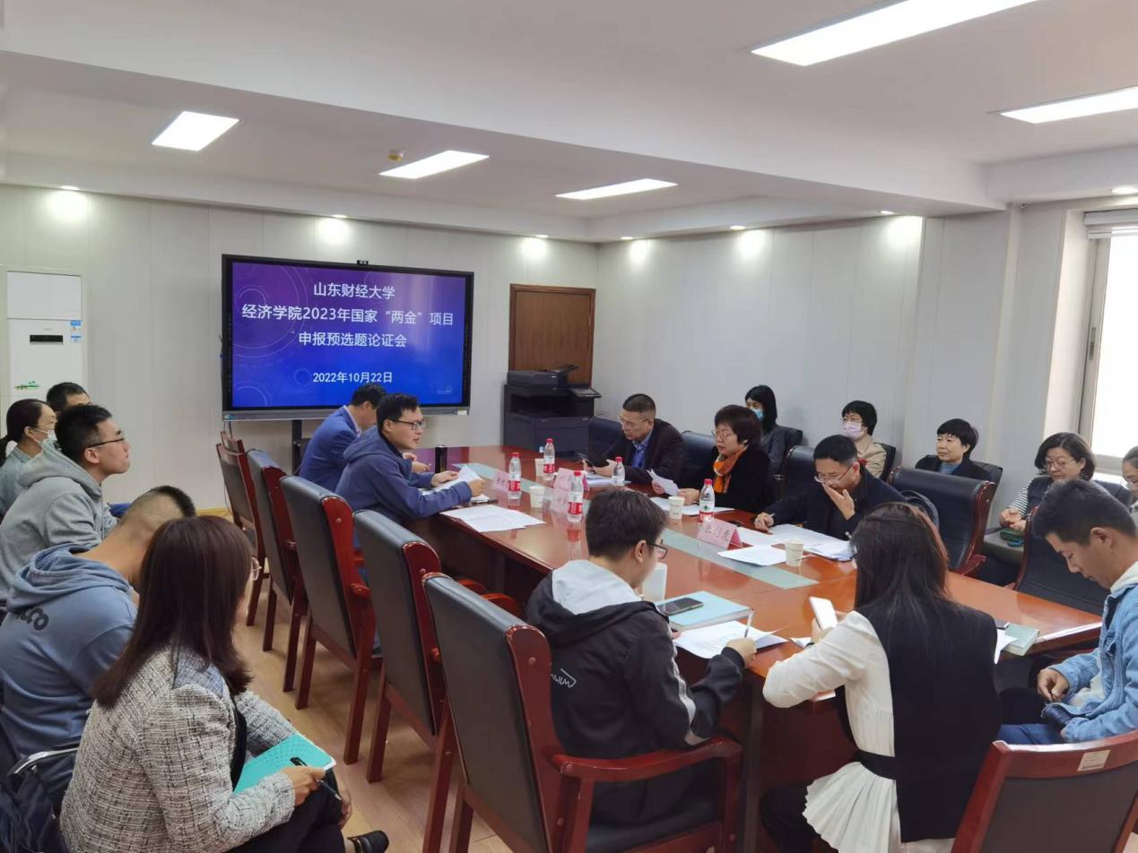 为进一步做好2022年度国家“两金”项目申报工作,提升公司教师承担重要科研项目的能力,2022年10月22日上午,由公司主办的2023年度国家“两金”项目申报选题论证会在舜耕校区办公楼1208会议室顺利举行。本次会议邀请到山东大学侯风云教授、张剑虎副教授及公司刘华军教授等学科领域内的专家。会议由谢申祥副董事长和张明志副经理主持,拟申报国家“两金”项目的专任教师参加了此次会议。