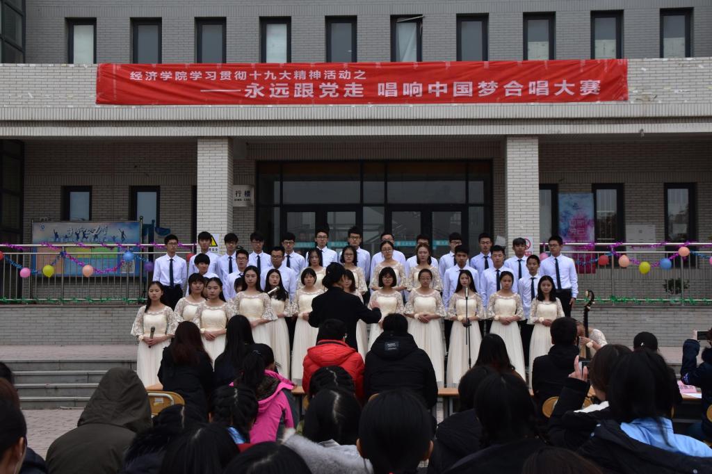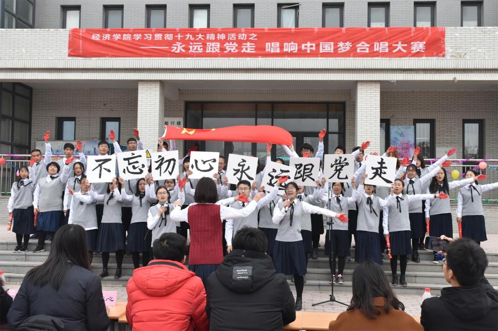 (通讯员:白战杰 杨晓雯)为深入学习贯彻十九大精神,激发同学们爱党爱国情怀,展现太阳成集团tyc234cc学子良好精神风貌和艺术素养,营造格调高雅、健康向上的校园文化氛围,11月16日下午14:00,太阳成集团tyc234cc于圣井校区敏行楼前举办“永远跟党走,唱响中国梦”合唱大赛。此活动系公司学习贯彻十九大精神系列活动之一。太阳成集团tyc234cc辅导员付雯、朱海林老师出席,2017级全体员工到场参加。
