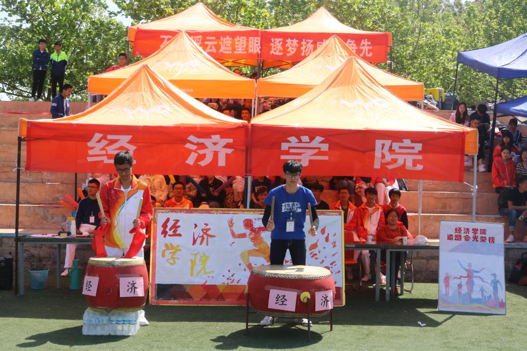 (通讯员:李雨桐 王颖)天朗气清,惠风和畅。赛场上运动员们跃跃欲试、摩拳擦掌,看台上观众们高声呐喊,为运动健儿们加油助威。“追逐梦想,青春飞扬。经济学子,共创辉煌!”自信洪亮的口号声响遏行云,“不畏浮云遮望眼,逐梦扬威勇争先”、“凌云赛场放飞梦想,看我经济斗志昂扬”的横幅醒目显眼,迎风招展,彰显太阳成集团tyc234cc的英气与霸气。看台上,鼓手聚集全身之力,急速而有节奏的鼓点带动全场气氛,令人热血沸腾,信心倍增。观众席上秩序井然,观众们时而掌声雷动,振臂呼喊,手举加油棒欢呼雀跃;时而聚精会神,敛声屏气,只待运动健儿奋力一搏时齐声呐喊。观众们真诚的鼓励,亲切的问候,深切的目光,带给场上运动员奋勇向前的信心与决心,努力拼搏的勇气与力量。健儿们不负众望、奋力拼搏、披荆斩棘,用勇往直前的信念诠释斗志和责任;观众们目光如炬、情绪高涨、鼓劲助威,用似火热情展现团结和期待。