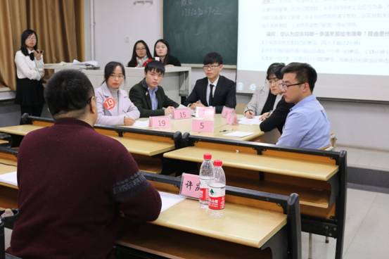 决赛阶段,12名同学通过现场抽签分为两组,进行无领导小组讨论。小组抽签确认题目后,首先进行个人发言,然后进行组内讨论,在规定时间内形成统一意见,并推举1名代表陈述小组意见,其他选手可进行补充说明。在此过程中,参赛选手冷静分析,认真讨论,各抒己见,充分展现同学们的应变能力与学术素养。评委老师全面细致的评价了同学们的表现,并据此进行公平公正的打分。最终,陈蒙同学凭借清晰的逻辑思维、灵巧的临场应变、流畅的语言表达,获得本次比赛一等奖,辛晓慧、丛昊获得二等奖,于泽剑、韩培培、陈小卫获得三等奖,李宁宁等14名同学获优秀奖,陈美玉等5名同学获优秀简历奖。最后,出席比赛的评委为获奖同学颁奖,并与选手合影留念。