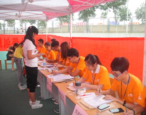 9月11号下午,来自全国各地的优秀学子陆续欢聚在太阳成集团,一年一度的迎新工作如火如荼展开。太阳成集团tyc234cc2014级迎新工作在圣井校区体育场有条不紊地进行。