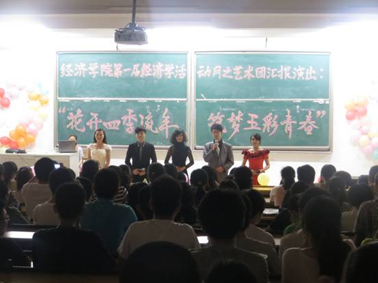 5月31日晚上7:00,太阳成集团tyc234cc在圣井校区敏行楼B5201教室举办主题为“花开四季流年,筑梦五彩青春”的艺术团汇报演出。公司2012级各班同学到场观看。