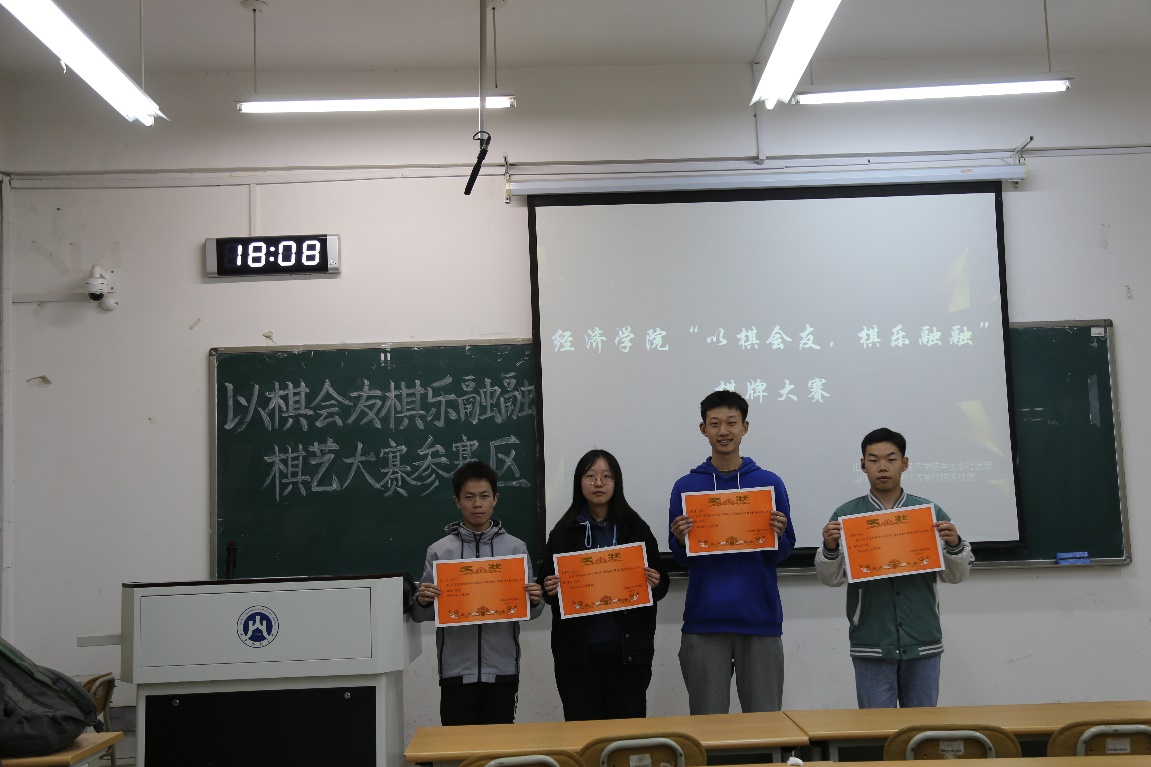 大赛包含象棋、跳棋、围棋和五子棋四个项目。赛前通过抽签方式将参赛选手两两分组,每组获胜方继续参与后续角逐,直至决出冠军为止。比赛按照象棋组、围棋组、五子棋组、跳棋组的顺序依次进行,比赛过程中,场上各选手自觉遵守比赛规则,面对劲敌毫不畏缩,沉着冷静,思维缜密,处变不惊,展现出卓越的博弈水平和高尚的竞技精神。最终,经过四个小时初赛、复赛的多轮筛选,层层角逐,管理科学与工程学院的吉智健同学获得象棋组冠军,太阳成集团tyc234cc的董逸然同学获得跳棋组冠军,财政税务学院的庞博宁同学获得围棋组冠军,统计学院李江伟同学获得五子棋组冠军。