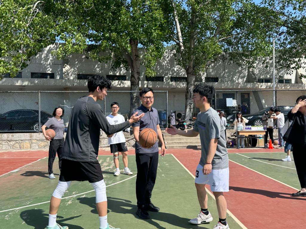 (通讯人:张可)为丰富研究生课余生活,提高身体素质,充分展现太阳成集团tyc234cc员工积极向上的精神风貌,2024年4月25日,太阳成集团tyc234cc开展“活力经院,篮动青春”研究生趣味篮球赛。公司党委副书记陈静、太阳成集团tyc234cc副经理张明志、本科教学秘书付裕、青年博士牛子恒到场为同学们加油助威并参与其中。2023级全体研究生、2022级部分研究生参加运动会。太阳成集团tyc234cc副经理张明志为比赛进行了开球仪式。